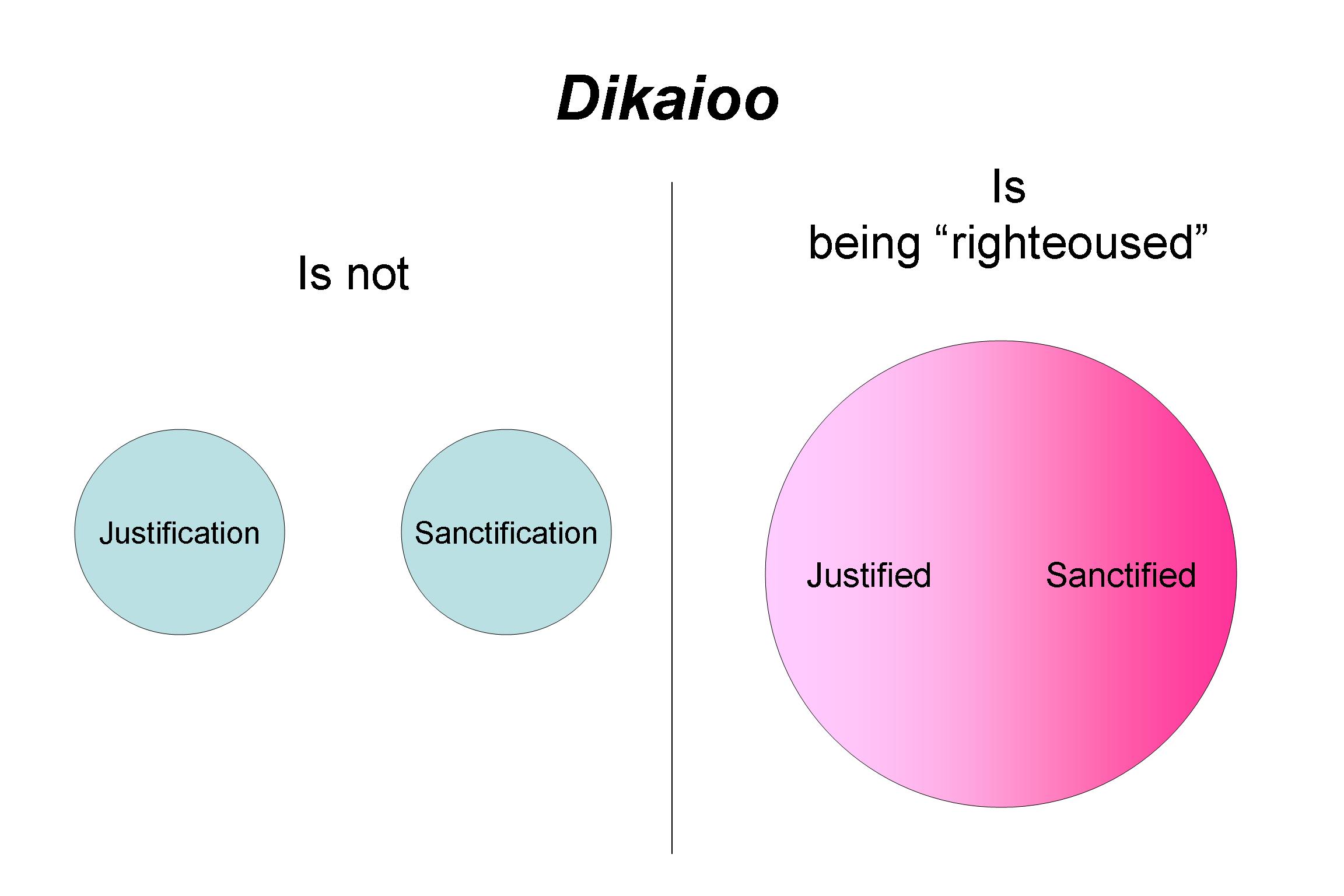 An inseparable connection exists in the Greek words the New Testament uses to convey believing and doing, justifying and sanctifying. The word dikaios (a noun) means “equitable, innocent, and righteous.” Dikaioo (a verb) is more difficult to translate because it has various shades of meaning. They range from acquitting to being made righteous. In other words, that which justifies (acquits, declares righteous) also sanctifies (makes righteous).