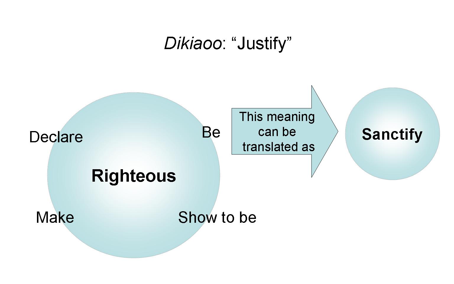 The Greek word for “justify” is dikiaoo. The main idea behind dikiaoo is righteous. To understand the normal semantic range for dikiaoo, we turn to the 4th Bishop of Rome, Clement, in his letter to the congregation atCorinth, which he wrote in 96 AD.