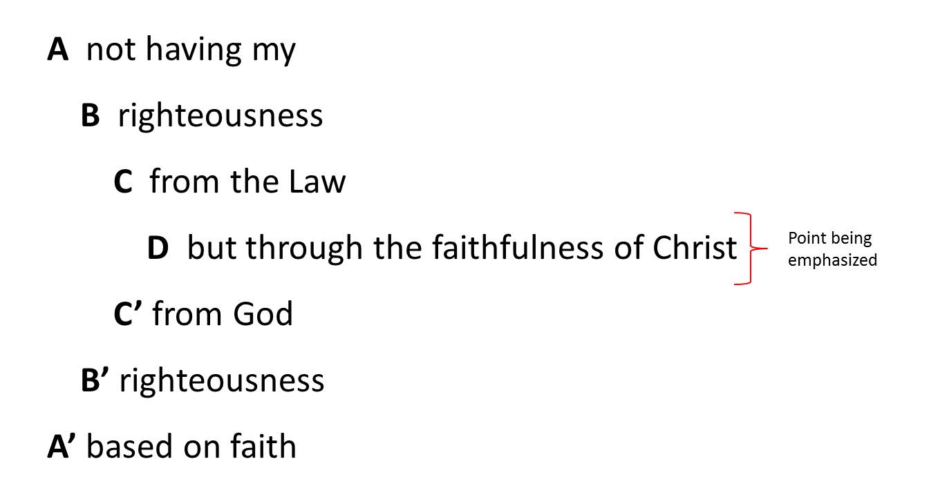 At the end of verse 9, Paul says that the Christian has God’s righteousness “based on faith.” This statement would be unneeded if he had just said that such righteousness was the Christian’s “through faith in Christ.”