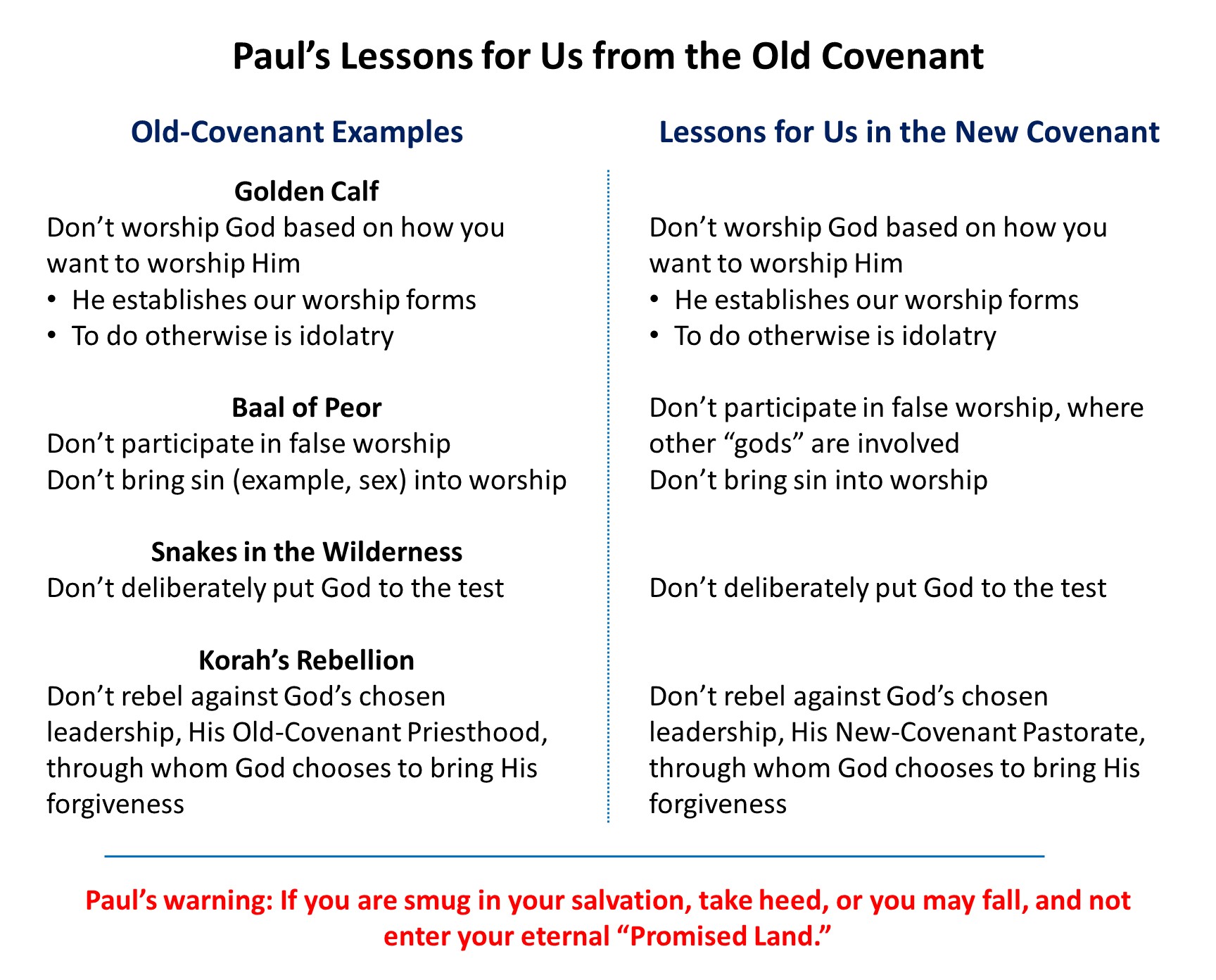 - Like the Israelites had fallen and not entered their Promised Land, what warning does Paul have for us about falling and not entering our “Promised Land”?