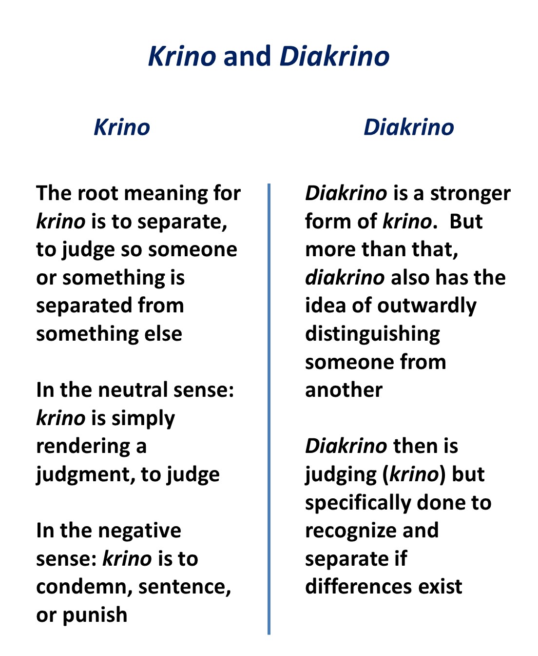 To understand Paul’s thinking in this verse, and in 1 Corinthians 11:31, we need to understand the meaning of two words: Krino and diakrino.