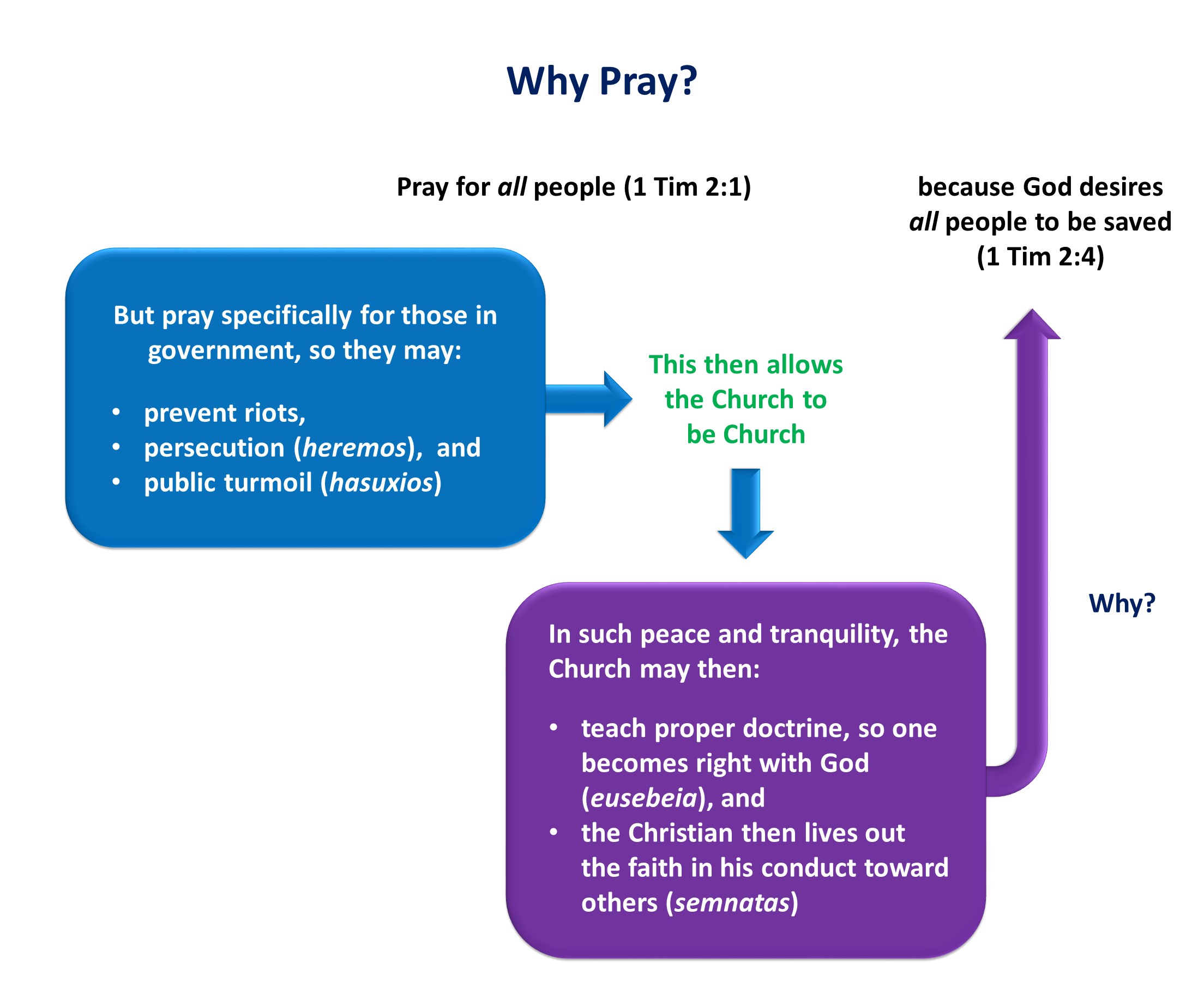 Paul begins this section with a “so then.” This means that Paul was connecting chapter 2 (proper worship) with what preceded it (false teaching and false teachers). Paul is providing a remedy to the chaos that the false teachers created in the Ephesian congregation. We get an idea of what that chaos was by the remedy that Paul provided. To counteract how the false teachers and their teaching impacted congregational worship, Paul begins by listing how prayers in the Church should be conducted.