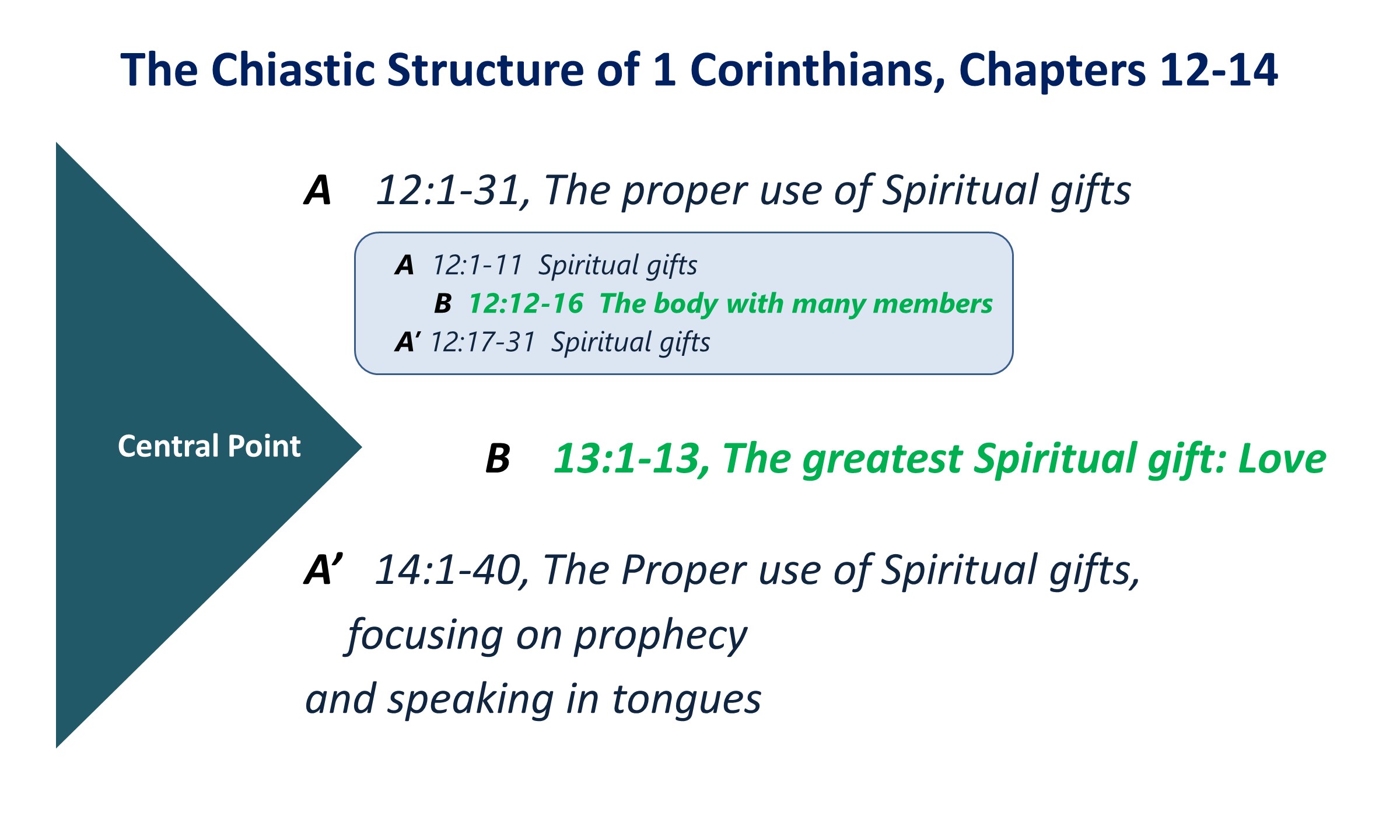 Having dealt with those who were misusing spiritual gifts (or doing what they thought were expressions of their spiritual gifts, but were not), Paul now moves to his main train of thought. He finished chapter 12 with these words: “And now I will show you the best way of all” (1 Corinthians 12:31). 1 Corinthians 13 is this “best way of all.” It is also the central point that Paul makes on using spiritual gifts.