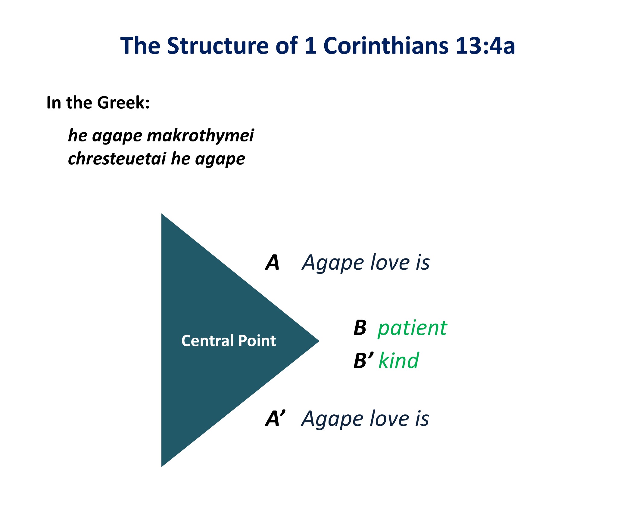 “patient”: to endure with forbearance. Thus, agape love endures what is bad and does not lash out in response to harm another.