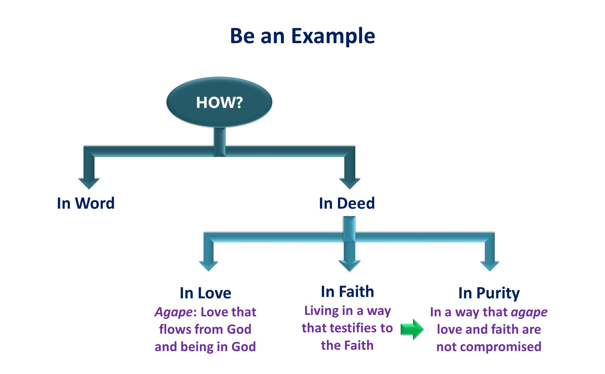 “set… an example”: “be an example.” “Be” is a present-tense imperative verb. Timothy must be an on-going example to the congregation at Ephesus.
