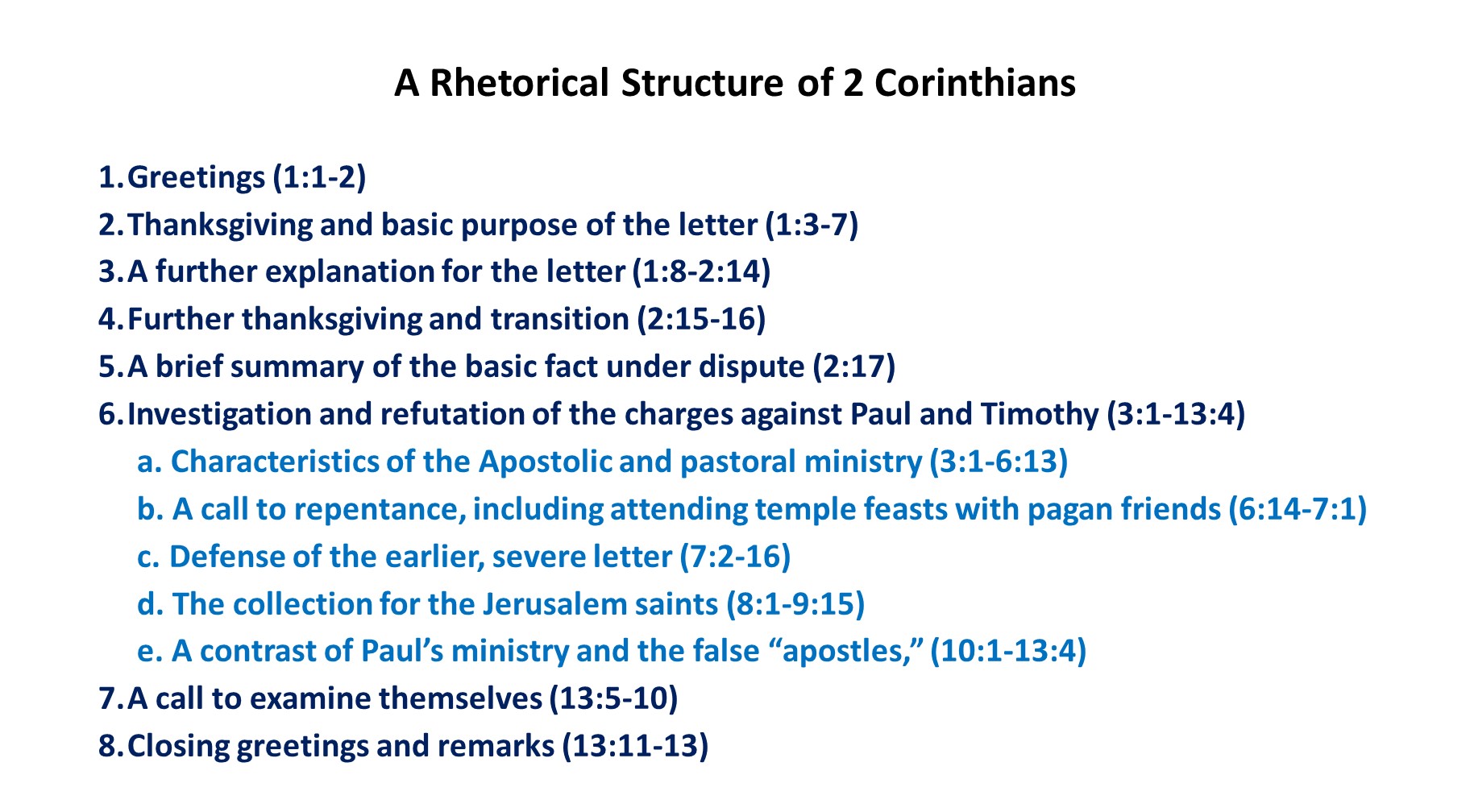 When we look at 2 Corinthians, we find a clear structure of how Paul and Timothy made their case for reconciliation between themselves and the Corinthian congregation.