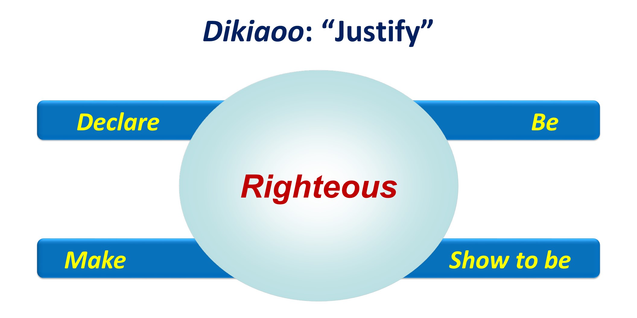 Here, we see some of the meanings for dikiaoo. Those same two meanings also show up in the New Testament. In Romans, Paul used “justify” to mean to be “made and declared righteous.” James used “justify” to mean “show to be righteous.” Works show that God has declared and made us righteous.