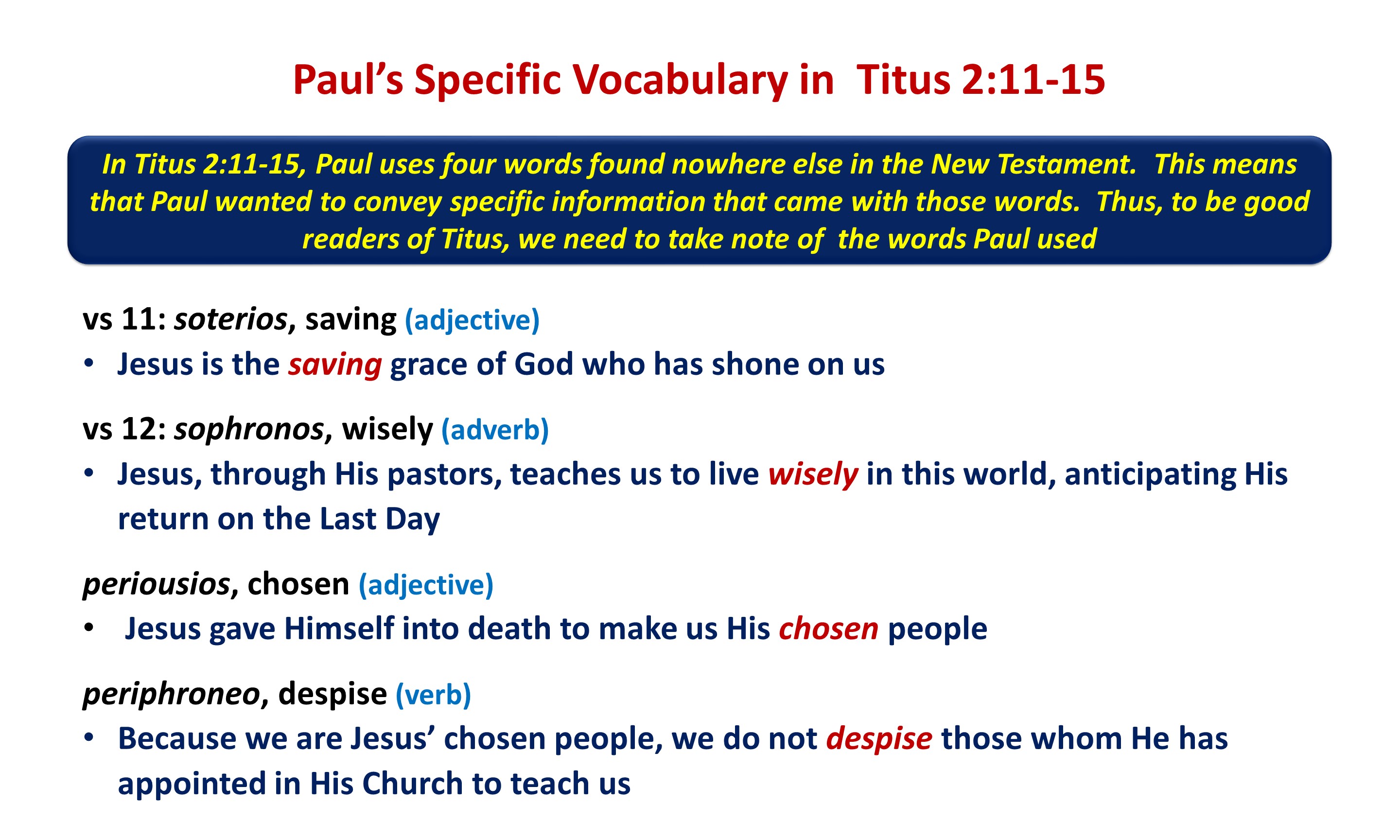 - If Jesus is teaching us to renounce the ways of the world and live wisely, righteously, and religiously (that is, according to the Christin faith), how does Jesus do teach us? (Hint: to whom did Paul write these words?)
