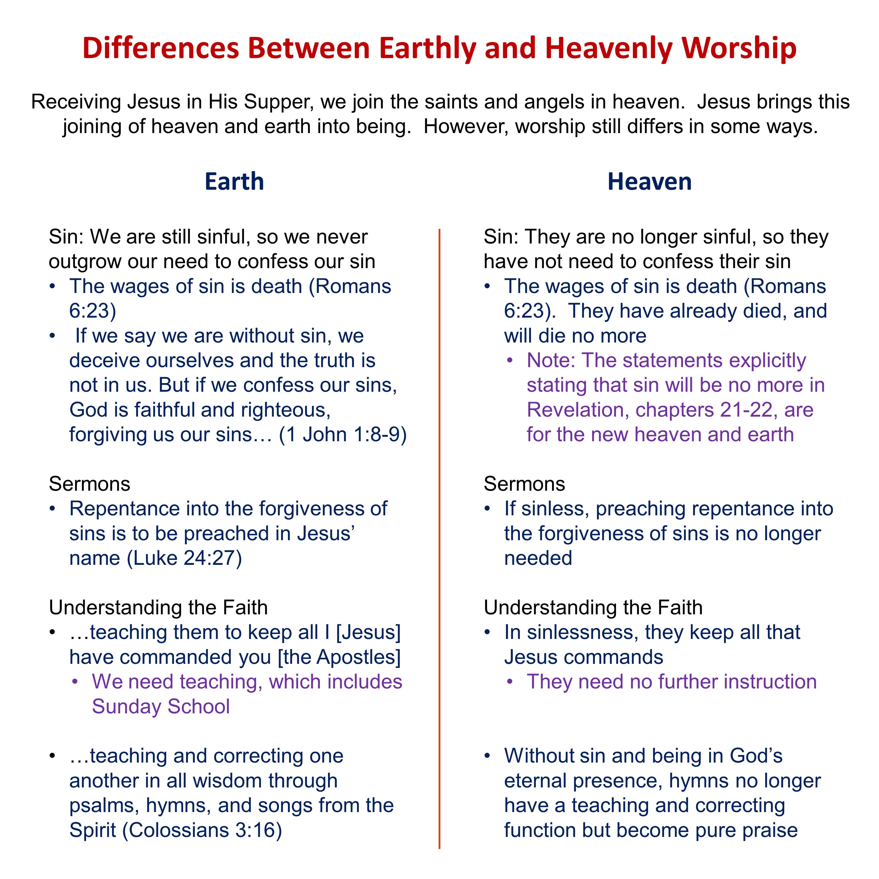 However, that does not mean that no differences exist in our worship of God. Unlike the saints and angels in heaven, we are still sinful.