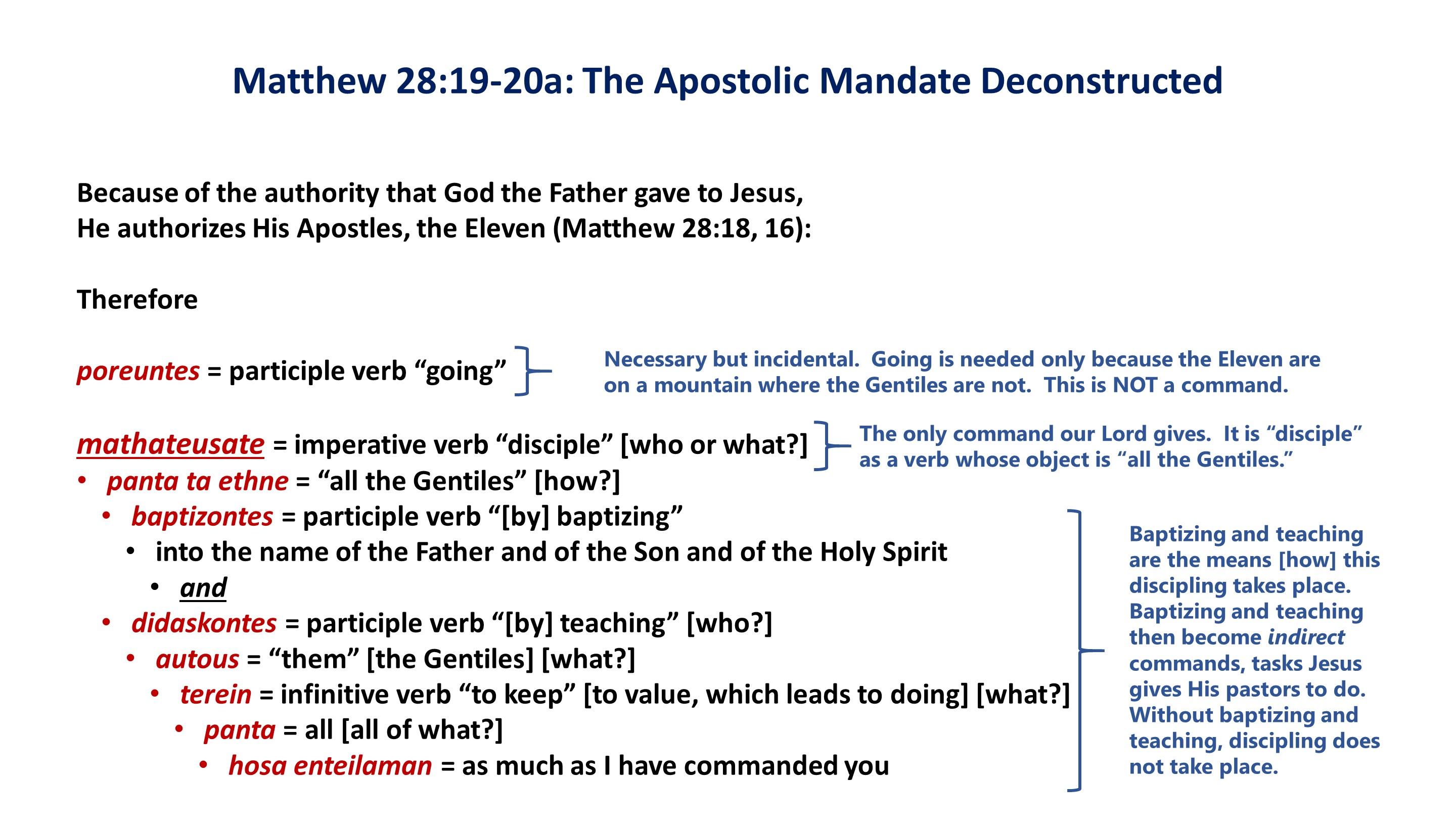 If we are to understand our Lord’s Apostolic Mandate more broadly, we see that it is part, not all, of what Jesus gives His pastors to do until He returns.