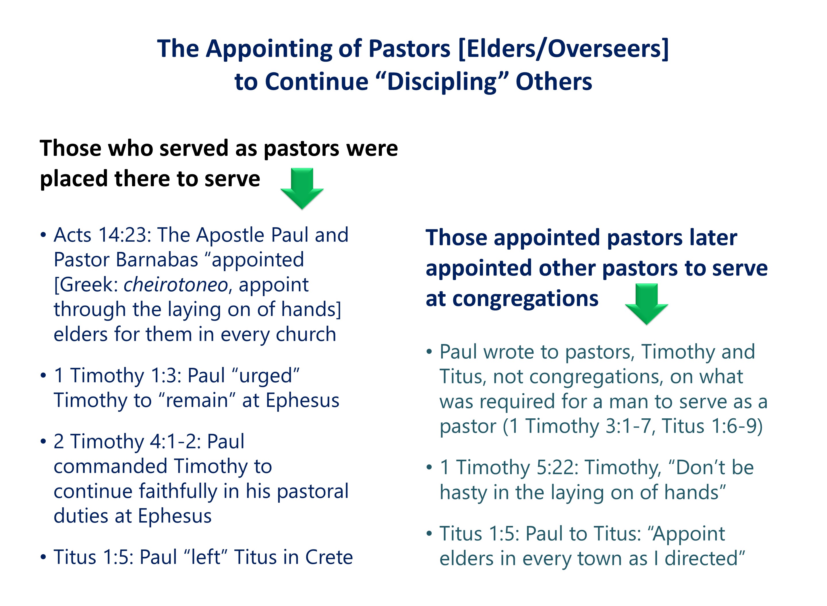 For this “discipling” to take place until the end of the age, when Jesus returns, these tasks had to pass on to the next generation of pastors. We see this passing on even taking place in Scripture.