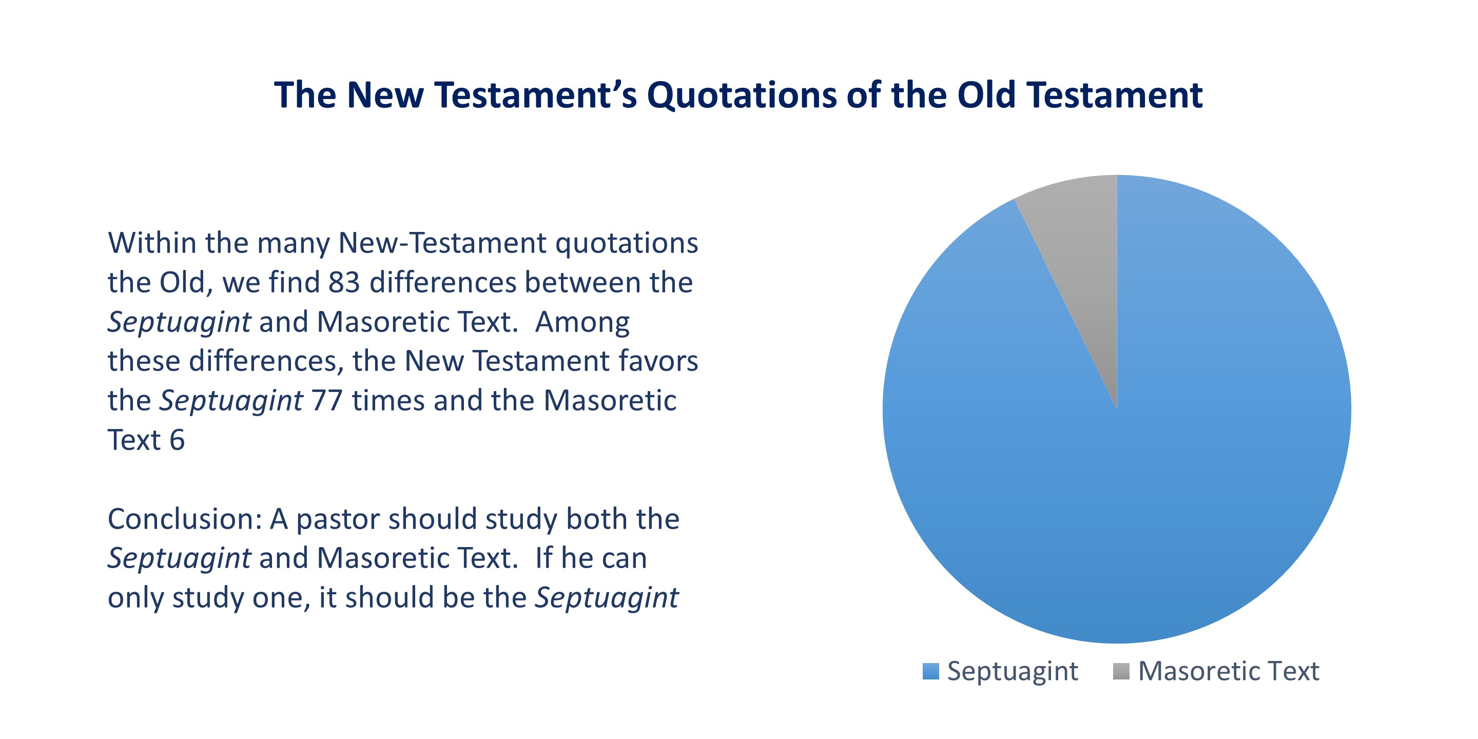 So it made sense for Jesus and His Apostles to use a Greek-language Old Testament, the Septuagint, as their Bible. The New Testament confirms the Septuagint was their Bible, for almost all Old-Testament quotations in the New Testament come from the Septuagint. When we include the New-Testament’s use of what we call the “apocrypha,” which is only in the Septuagint, the case is closed.