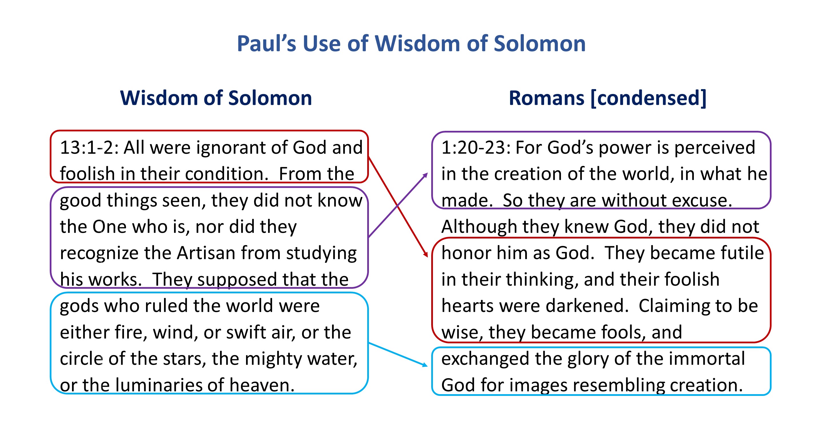 Paul adapts this series of cause-and-effect statements from the Apocrypha book of Wisdom of Solomon.