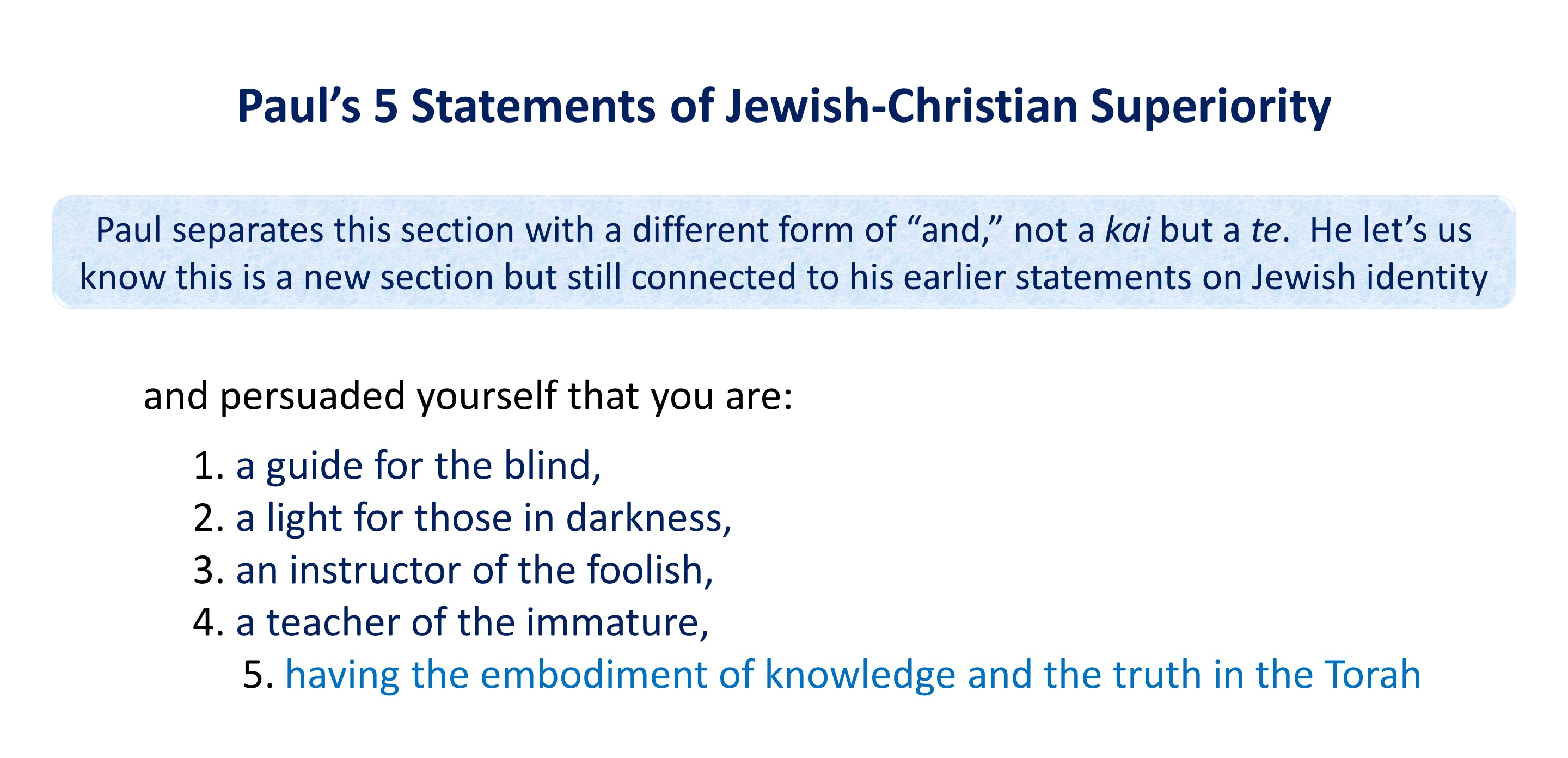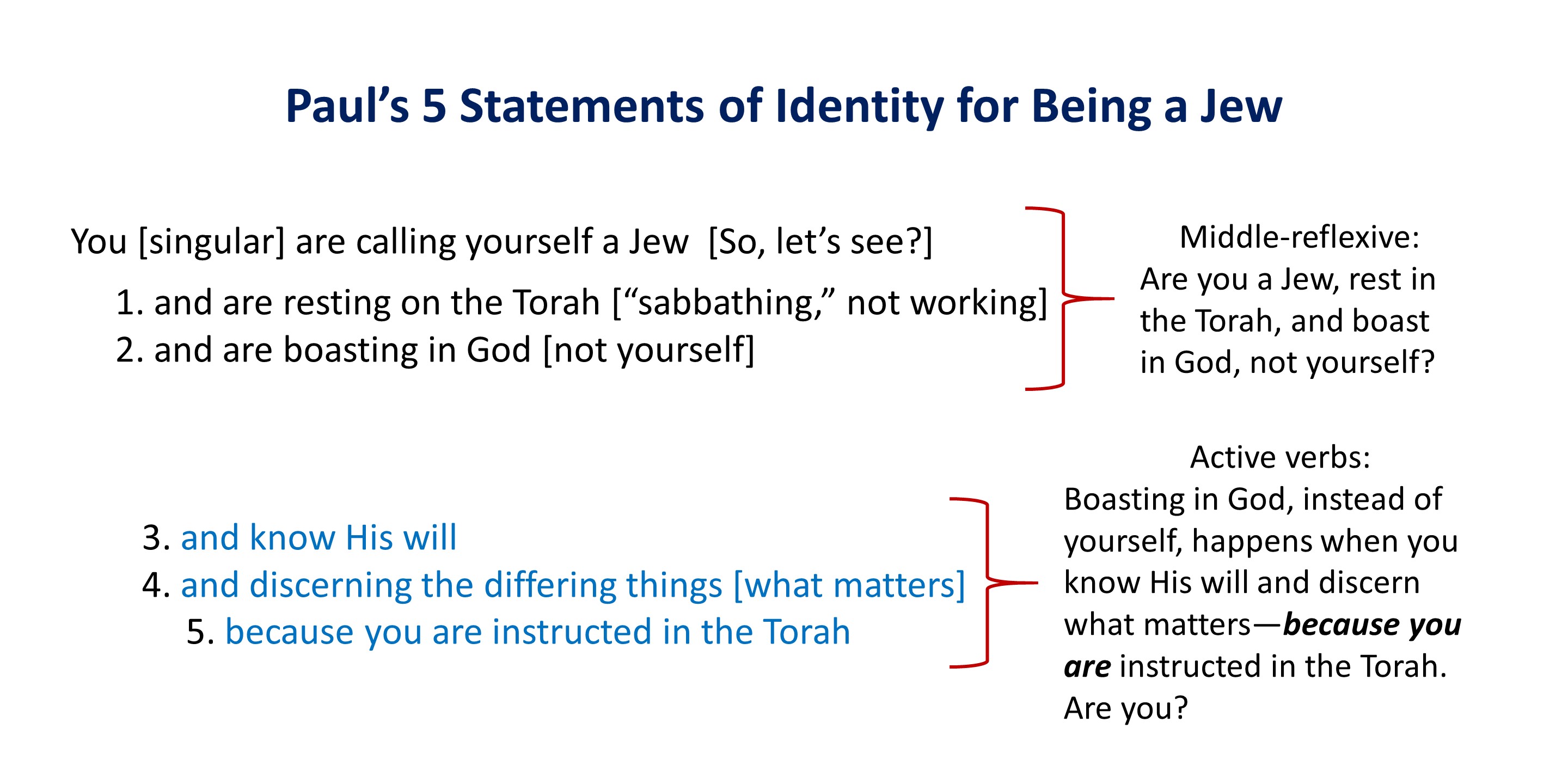 Paul will next answer a question of possible response: “We may not understand or follow the Torah as we should, but at least we are circumcised!” We’ll start there in the next Lesson.