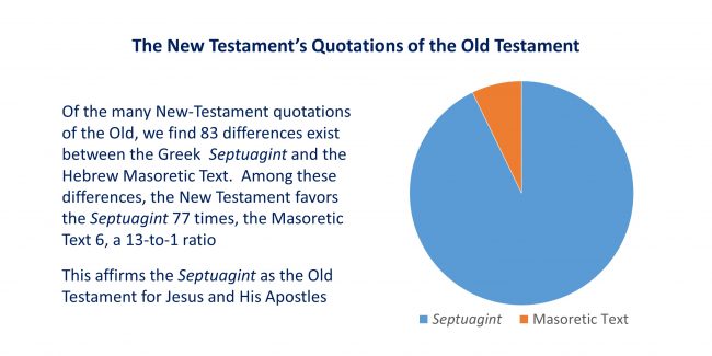 The New Testament itself confirms the Septuagint as the accepted Old Testament, for almost all of its Old-Testament quotations come from the Septuagint, not the Hebrew.