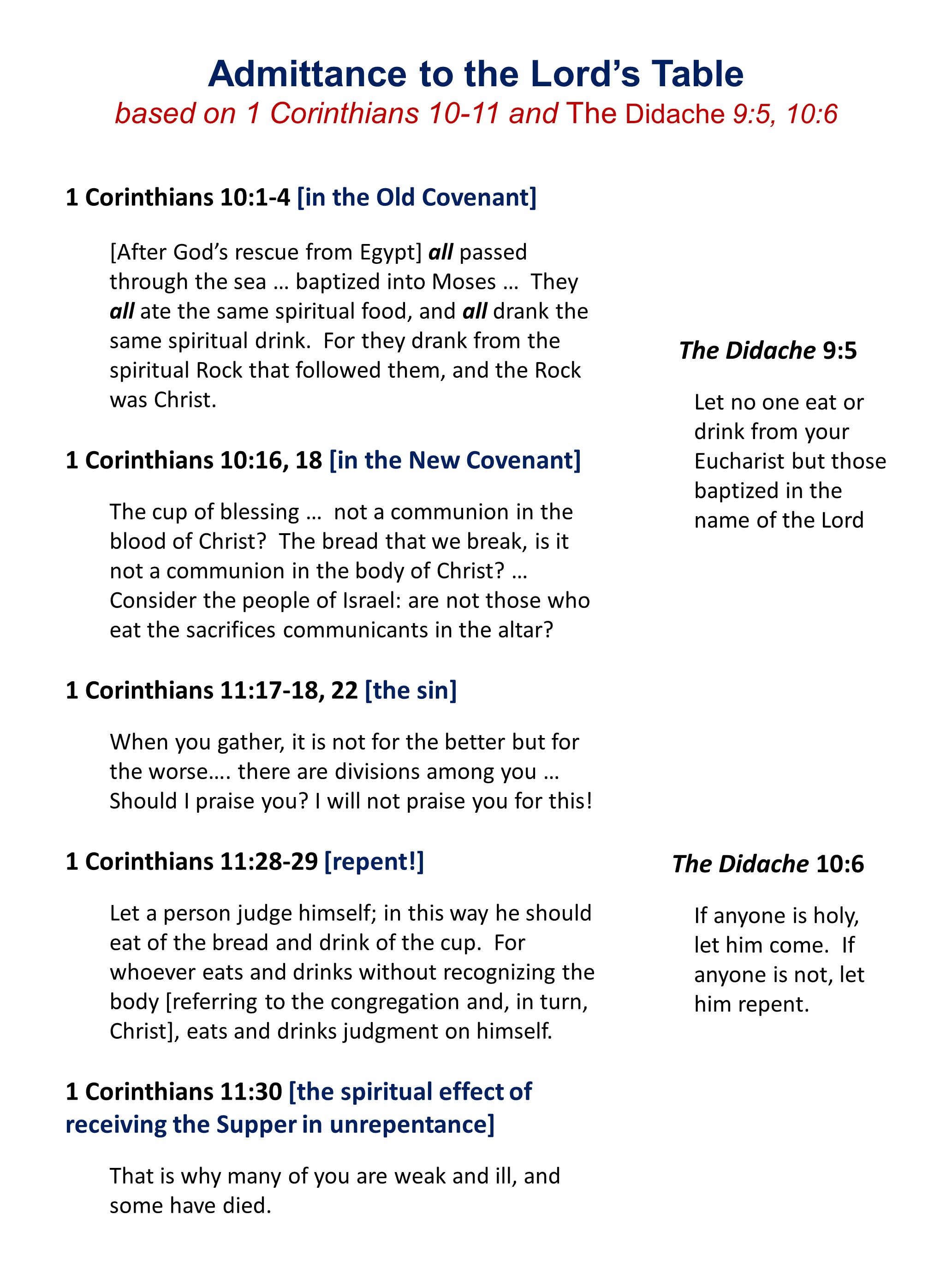 9:5 Let no one eat or drink from your Eucharist but those baptized in the name of the Lord.