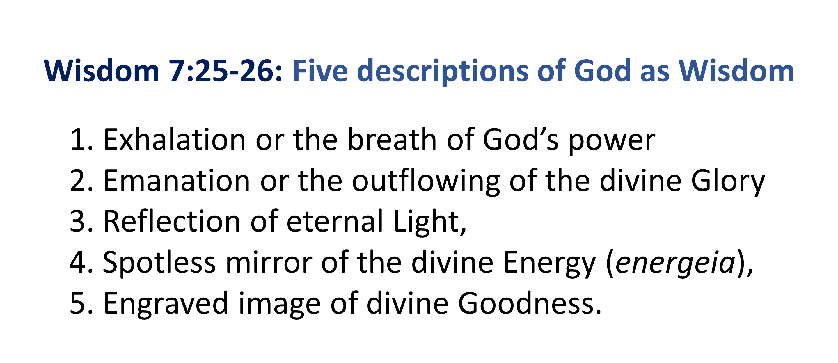 Wisdom 7:26: “Wisdom is a reflection [Greek, apaugasma] of eternal light, the spotless mirror of God’s activity, and an image of his goodness.”
