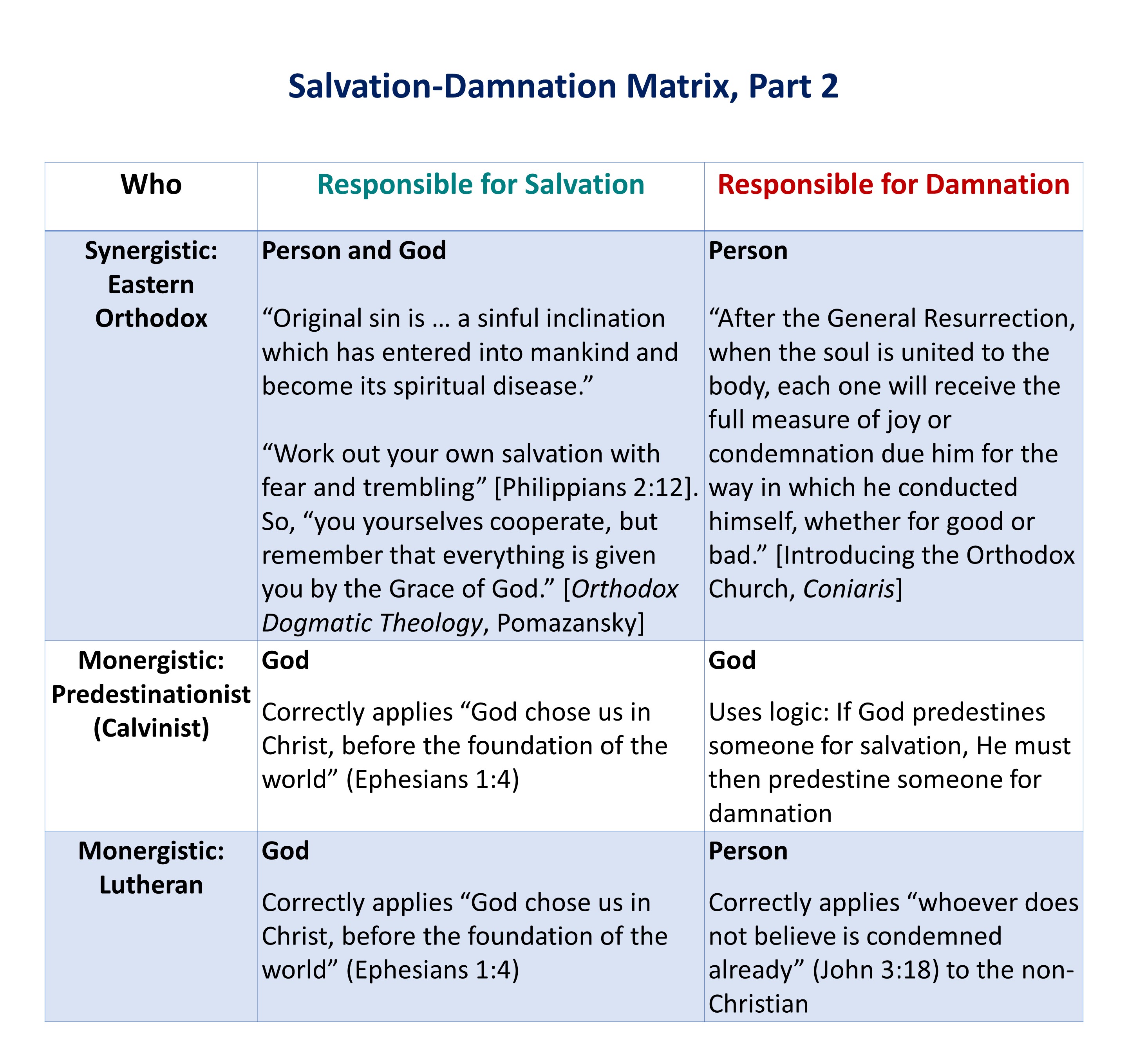 - Damnation is not God’s doing: “Depart from me, you cursed, into the eternal fire prepared for the devil and his angels” (Matthew 25:41). God did not predestine anyone to Hell. The lack of good works—in God’s eyes—revealed the person not to be part of His flock (Matthew 25:42-43). “For whatever does not proceed from faith is sin” (Romans 14:23).