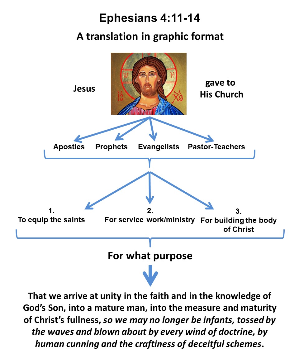 This is a hard passage to translate and understand because the only subject is Christ, the “He” in verse 11, with the entire focus on what He gives, not on what we do. So, the question is not what we do in the Church but what Jesus gives us, how and through whom He chooses to do so, and for what purpose. Why does Jesus give to His Church?
